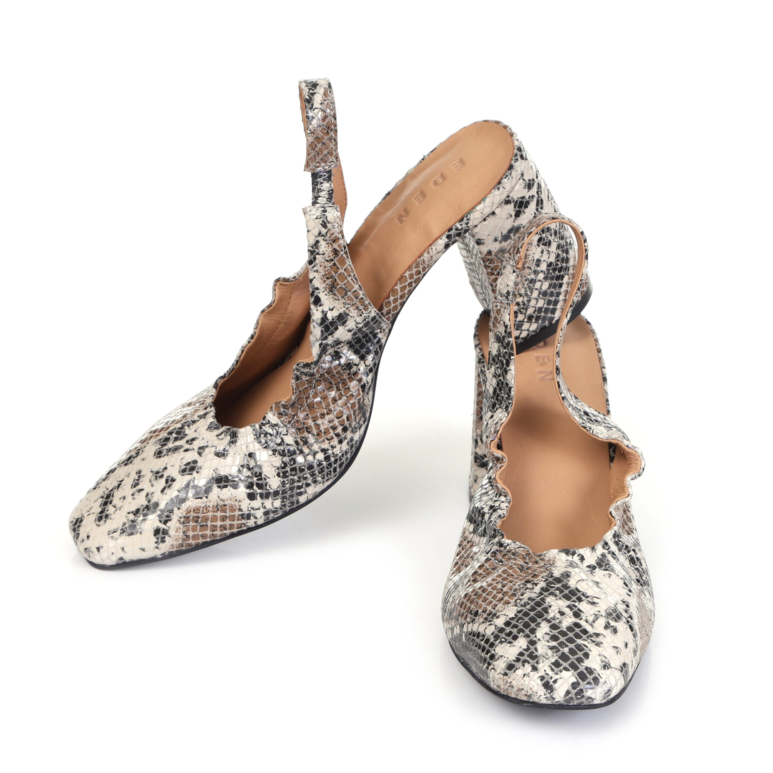 Striking and sophisticated, Genoa is a heeled sandal crafted from luxurious snake-embossed leather. Its sleek silhouette, bold texture, and elegant lift make it the perfect statement piece—designed to turn heads, while offering all-day comfort and confidence. Wildly refined, effortlessly powerful.