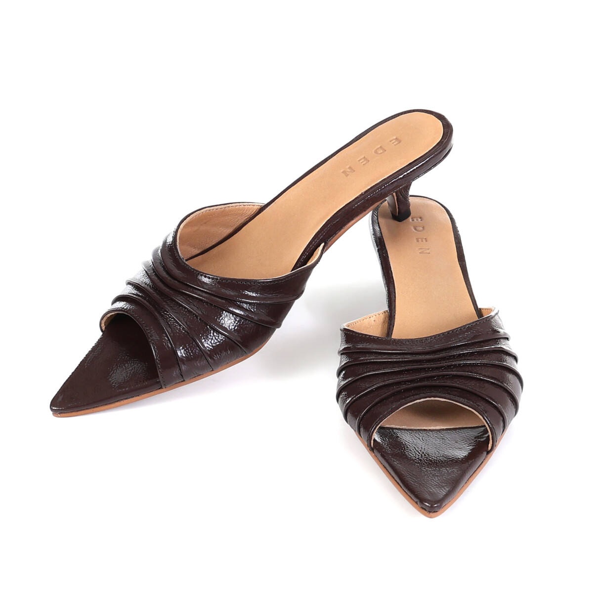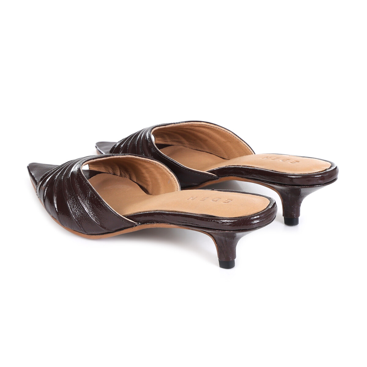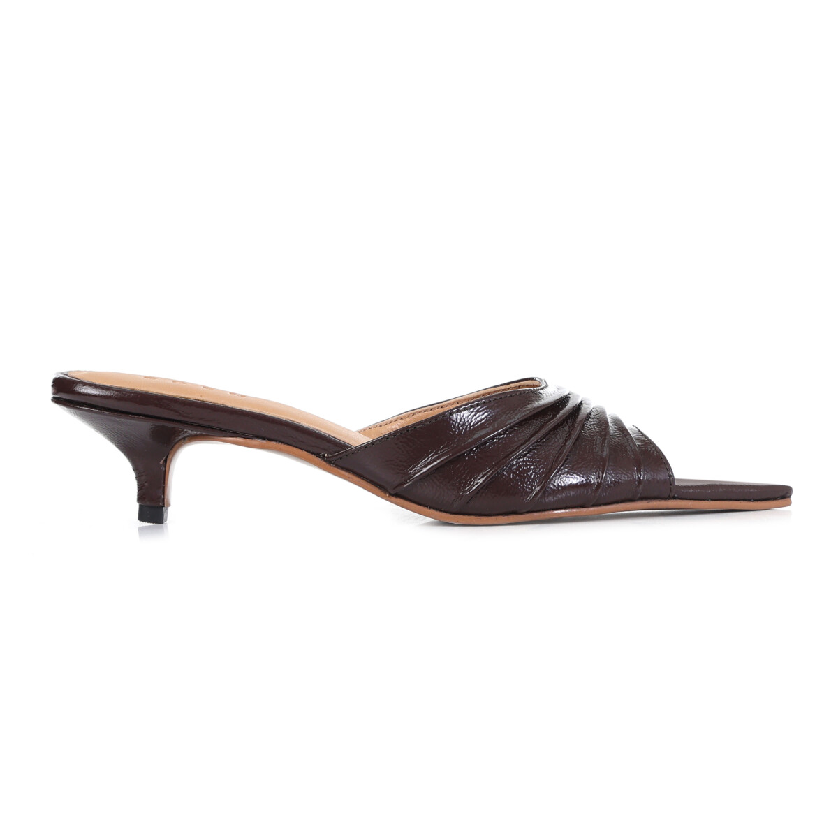 The Sulmona Kitten Heel is a study in effortless polish. Crafted in high-shine Naplak leather, this pointed-toe silhouette features a subtle, crinkled texture that adds depth to its rich autumnal palette. The Sulmona is designed for the transition from the boardroom to a gallery opening.